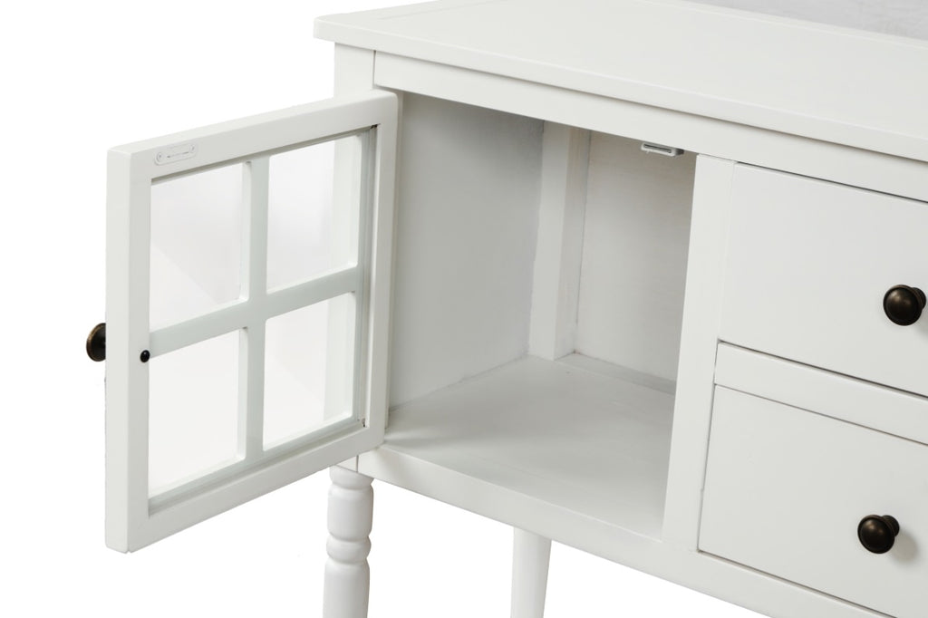Sophisticated brass knobs add culture and elegance to this transitional console table. This piece of home furniture is designed to be a multi-functional space saver which is suitable for dining room, entrance or living room.Solid wood frames and legs and tempered glass make this cabinet stable and durable.