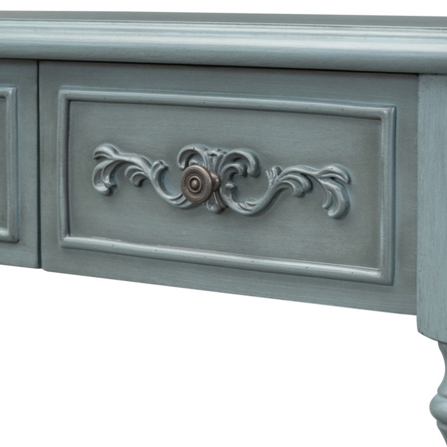 The combination of carved patterns and Roman legs gives the table a vintage look without compromising its aesthetic appeal.