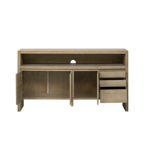 U_Style 60" 3-Door Sideboard with 3 Drawers - Modern Solid Ash Veneer MDF Sideboard, Semi-Open Shelf N711P289141O
