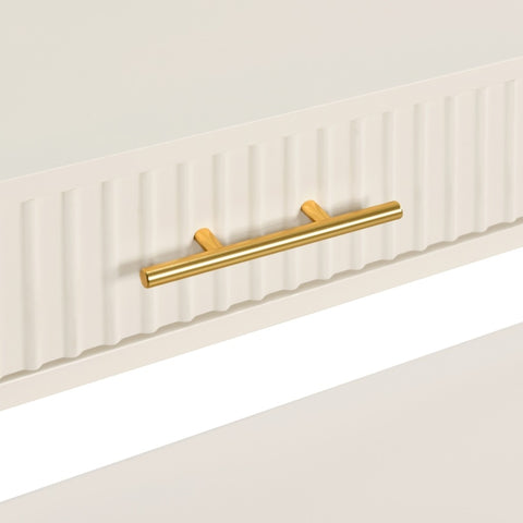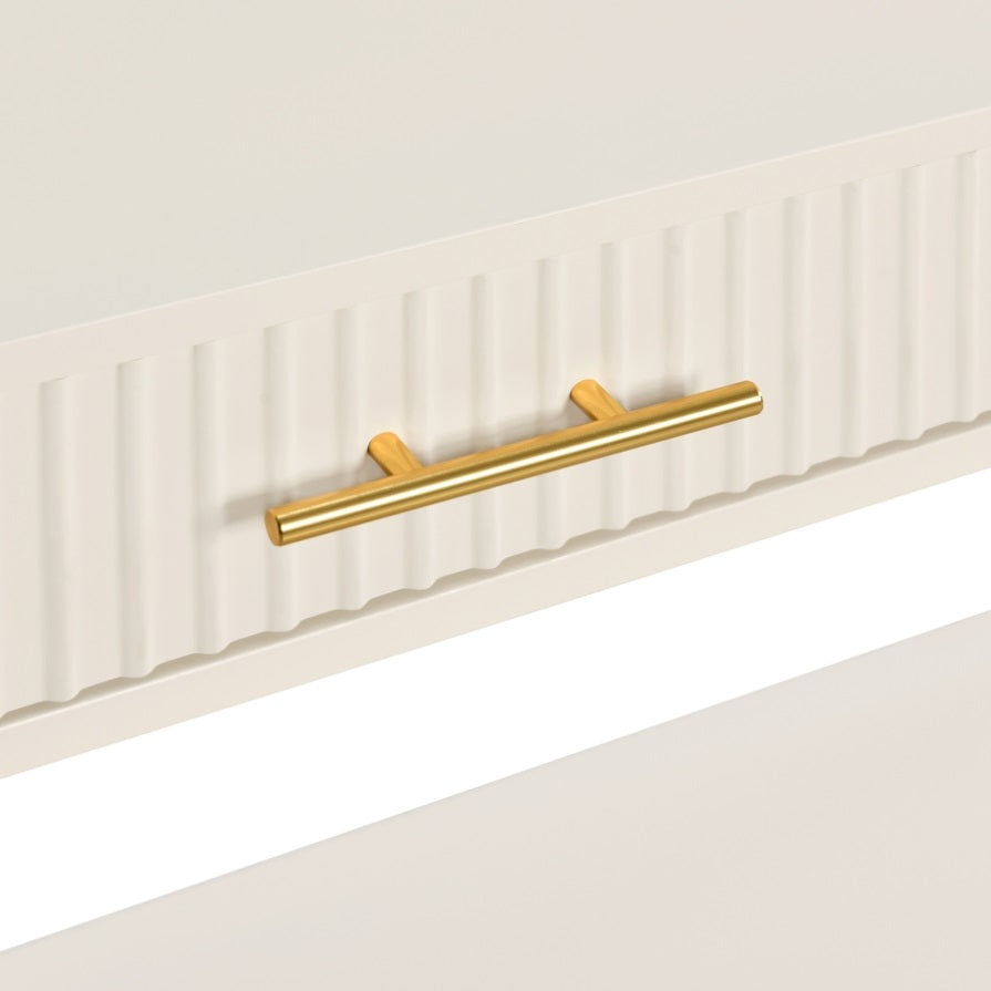 [Stylish Vertical Stripe Drawers]: The three drawers feature a unique vertical stripe design, adding a touch of modern elegance to the table. These intricate details showcase the attention to craftsmanship, elevating the overall aesthetic.