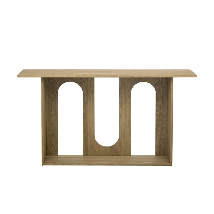 U_STYLE Modern and Curved Design Ash Veneer Console Table with Shelf,Suitable for Entryway,Hallway N711P241287O