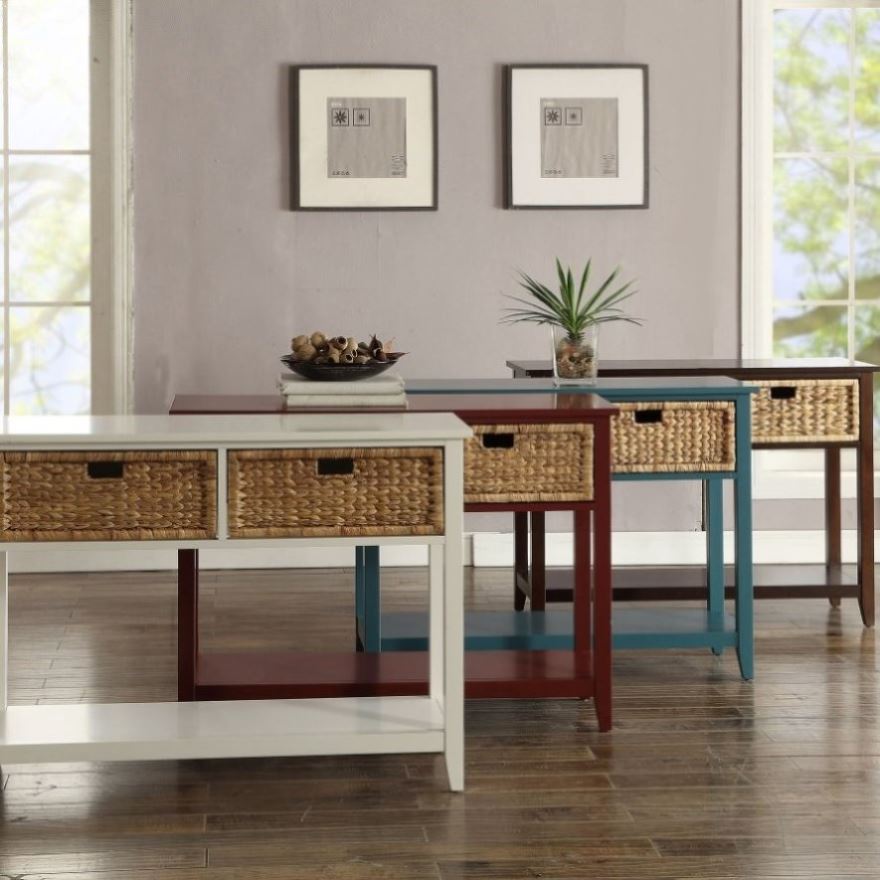 Featuring a rectangular design, this coffee table adds versatility to your living space with two basket-like drawers for convenient storage and organization. With additional open storage and a bottom shelf, it offers extra space for displaying decor or storing larger items, while sturdy wooden straight legs provide stability and a touch of traditional elegance.