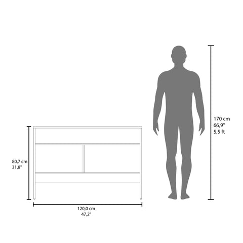 Features three open shelves that provide ample space to display decorative items like books, vases, and more