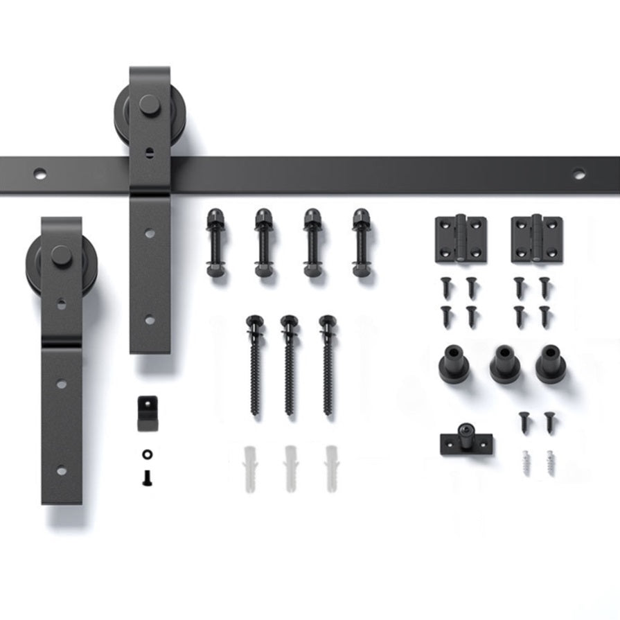 The barn door hardware kit comes with 2 kinds of wall fastener, expansion screws are used for cement walls, ordinary screws are used for wood walls and cabinets, etc.