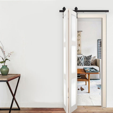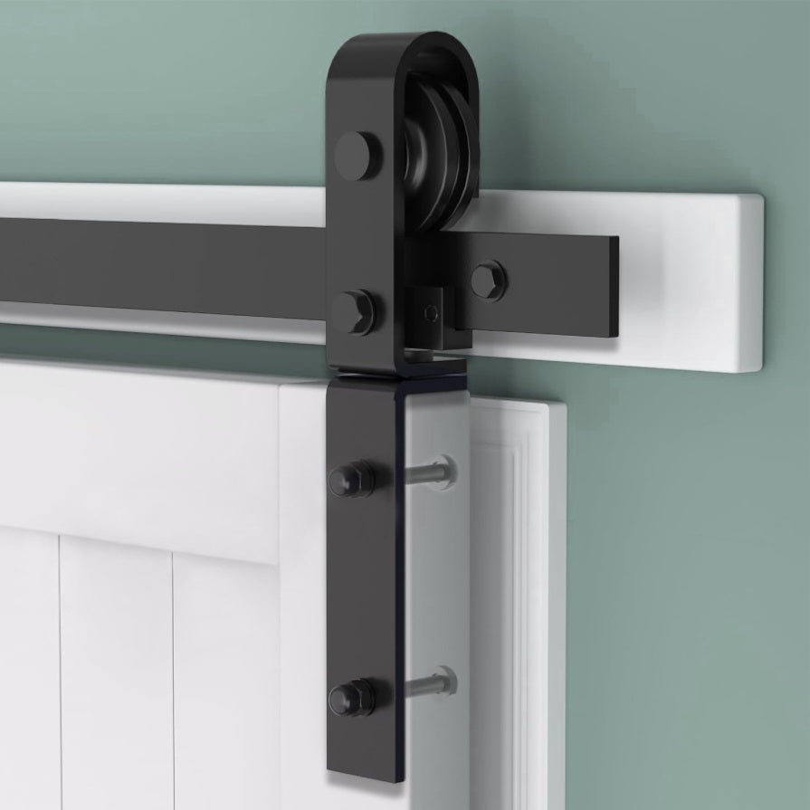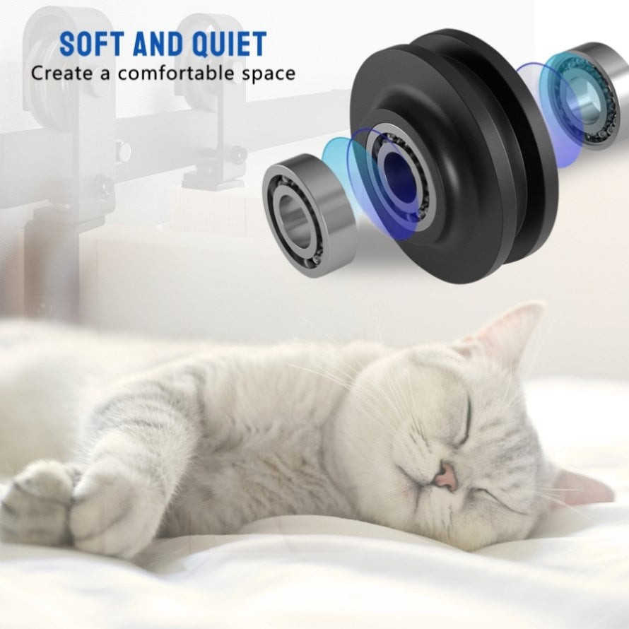 This sliding wooden door hardware kit is made of high-quality steel and is coated with black powder to ensure corrosion resistance and durability. High strength industrial grade tracks and pulleys can easily withstand 300 pounds of load provides a smooth and sturdy rolling performance.