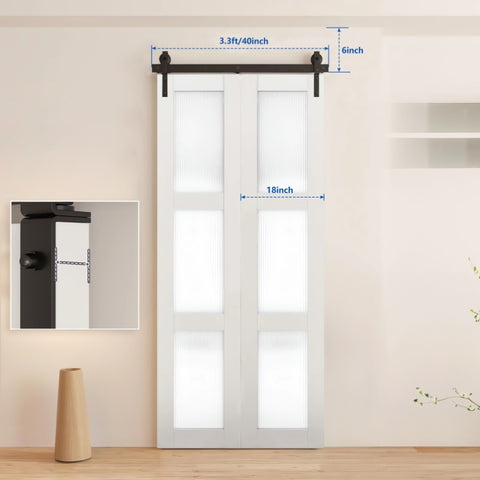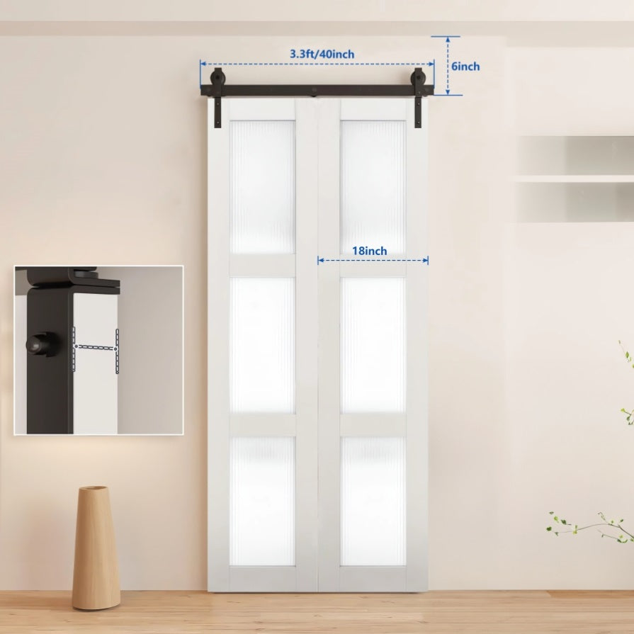 40" Bi-Folding Sliding Barn Door Hardware Kit for 2 Doors,Smoothly&Quietly,Black Track J Shape 89494323