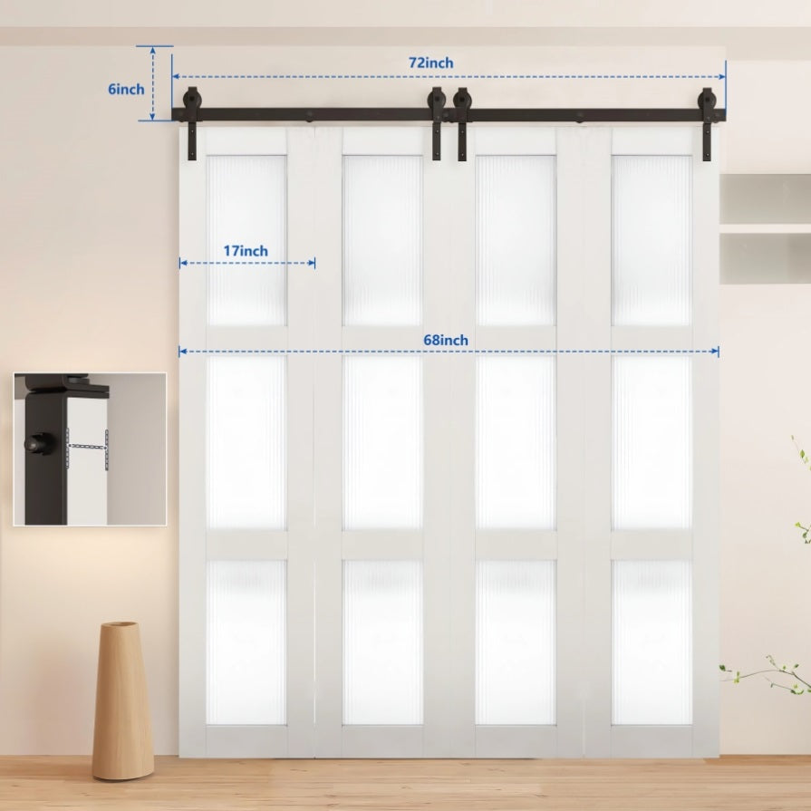 72" Bi-Folding Sliding Barn Door Hardware Kit for 4 Doors,Smoothly&Quietly,Black Track J Shape 79460627