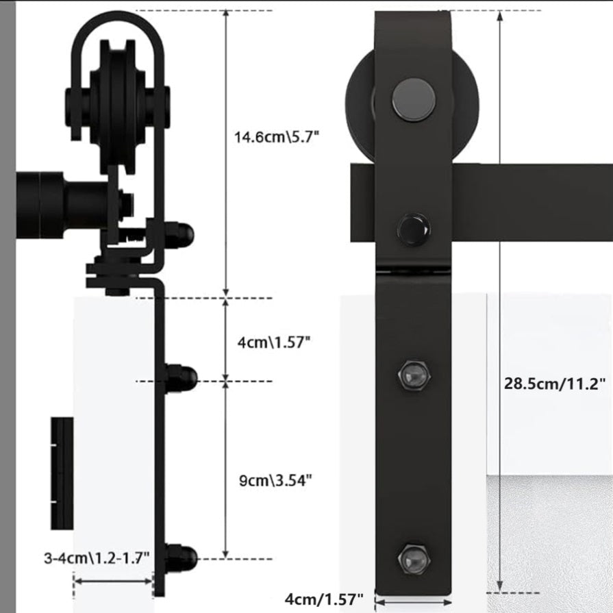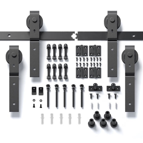 This sliding wooden door hardware kit is made of high-quality steel and is coated with black powder to ensure corrosion resistance and durability. High strength industrial grade tracks and pulleys can easily withstand 300 pounds of load provides a smooth and sturdy rolling performance.