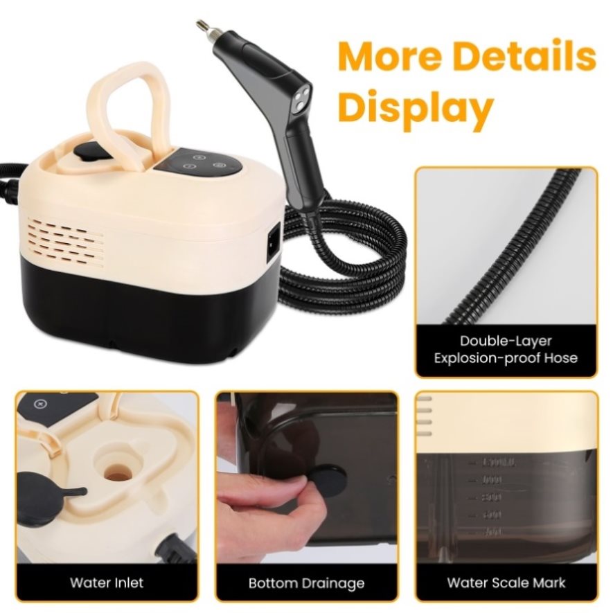 - Dual Control & Multiple Protections: This multifunctional little steamer features a digital display, which is easy to read and operate. You can control it either through the buttons on the handle or the machine itself. Equipped with overheating protection and dry burning protection , this portable car steamer ensures safe operation. The double-layer explosion-proof steam hose adds an extra layer of safety.