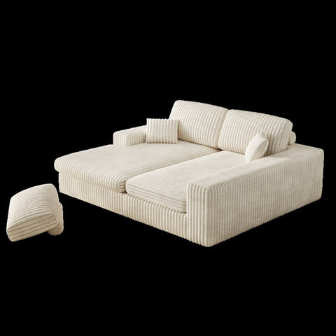 • [Neck Pillow Design]This corduroy sofa comes with three cushions and two pillows, and a neck pillow can be installed behind each cushion. When you lie in the recliner position, the neck pillows give you enough support, not only that, when you lean on top of the sofa, the combination of the neck pillows and cushions also provide extra support.