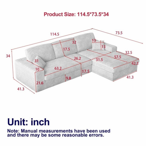 114.5'Modern Corduroy Modular foam Sofa, Recliner Seat reversible Sofa, 2in1 Sofa with Recliner and 47817678
