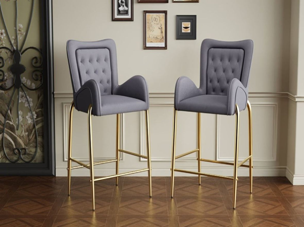 Available in two colors, these stools boast a golden frame that complements the sleek, tufted design, adding a modern flair to your decor. Their stylish silhouette makes them a standout addition to any room.