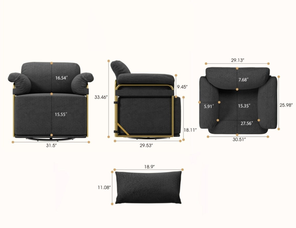 ErgonomicThe contemporary swivel square sofa chair, the wide upholstered features high-quality high-resilience foam and independent pocket springs, providing excellent cushioning performance and supporting weights up to 300 pounds.