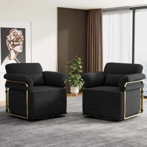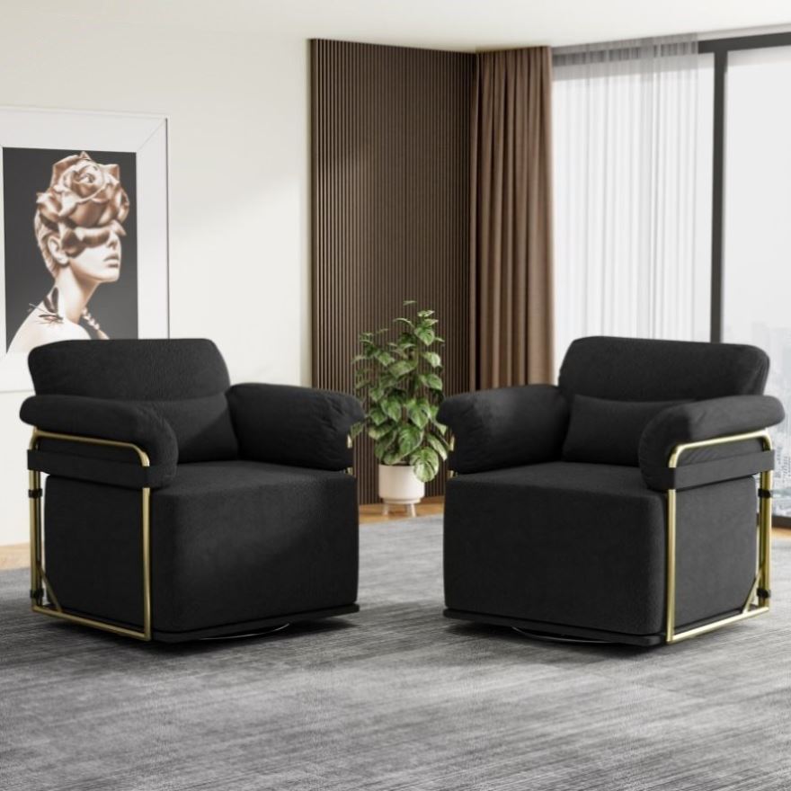 Luxury DesignThis square swivel accent chair is made from soft fabric,skin-friendly, scratch-resistant, easy to clean,providing better comfort.With a gold metal frame, very stylish and elegant.