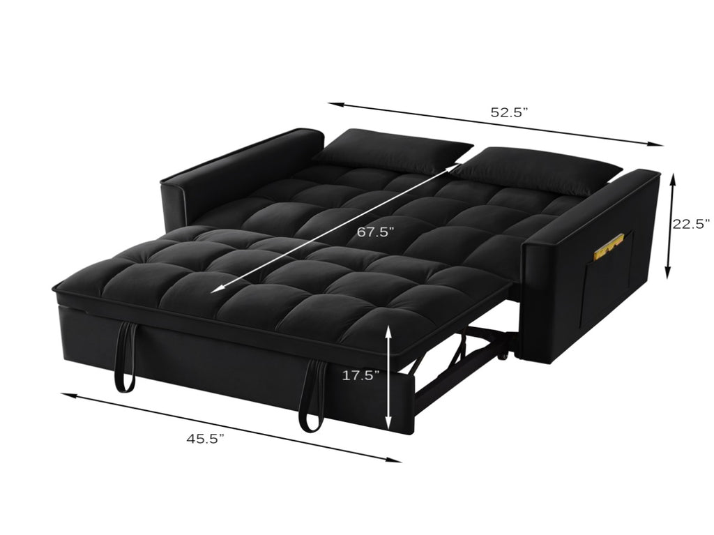 Material: Sofa Bed is wrapped in premium velvet fabric, High-density sponge makes the sofa very elastic, nice for rest and sleep. The frame maximum capacity up to 550lbs.