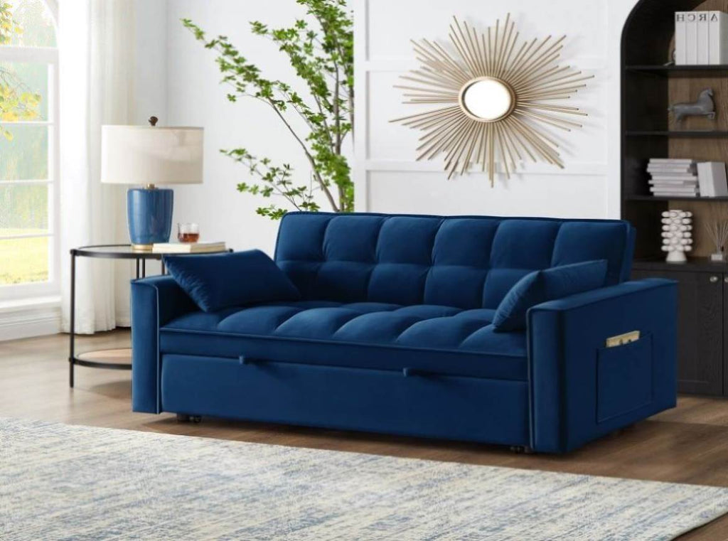 Multi-Functional Design: This four-in-one double pull-out sofa bed with dual armrests and built-in storage pockets offers versatility and convenience, serving as a comfortable seating option, a cozy sleeping space, armrests for relaxation, and storage for keeping essentials organized.