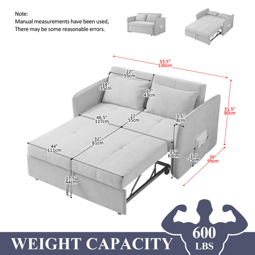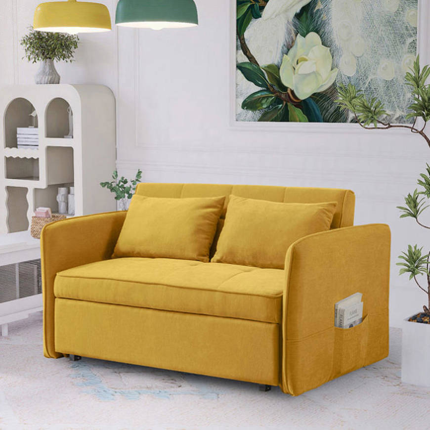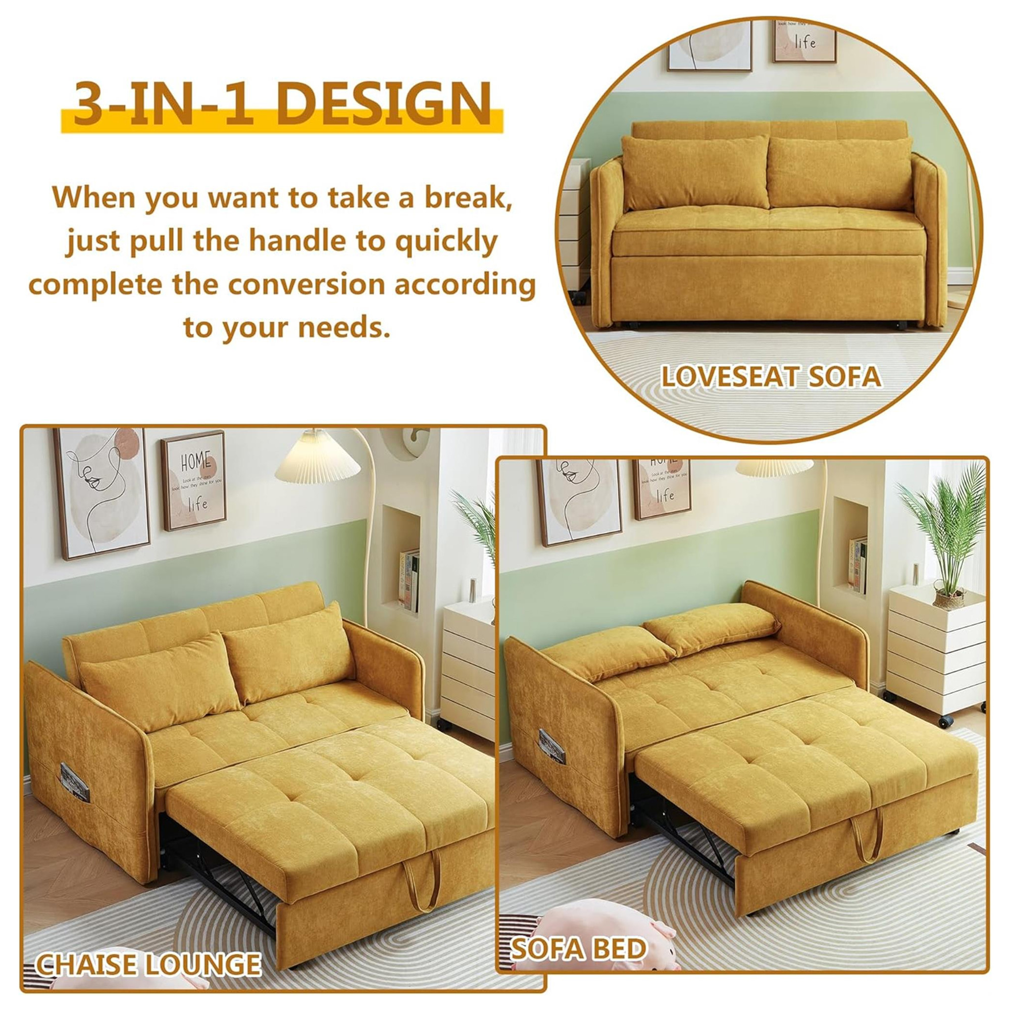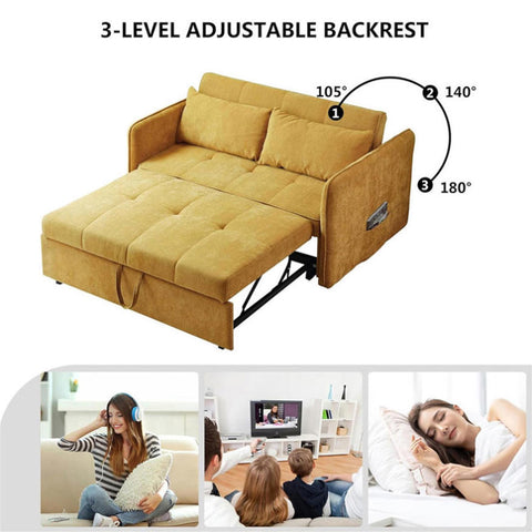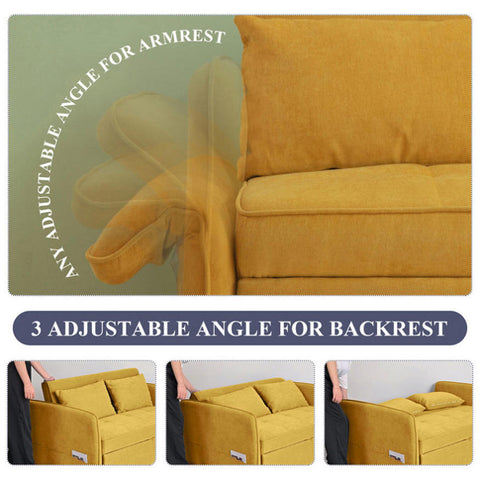 53.5"Chenille fabric pull-out sofa bed,sleeper loveseat couch with adjustable armrests-Yellow 00609460