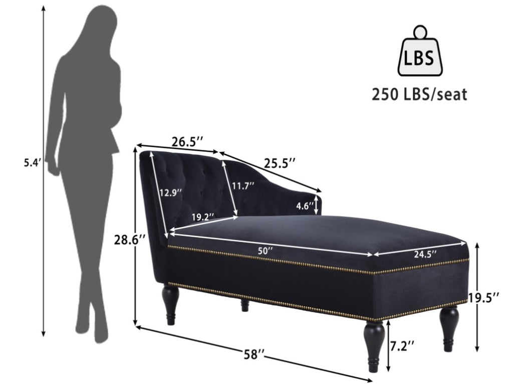 58''Velvet Chaise Lounge,Button Tufted Right Arm Facing Lounge Chair with Nailhead Trim WF297646AAB