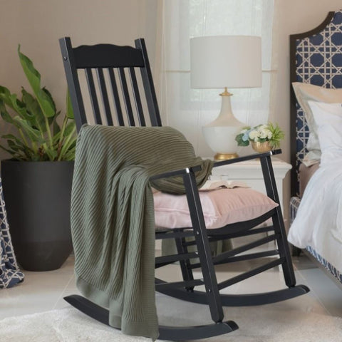68.5*86*115CM Square Wooden Rocking Chair Wavy Backboard Black 40856754