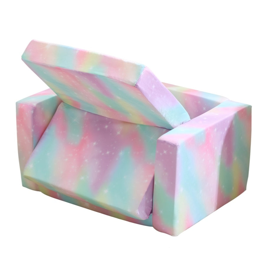 The KS-001 All-Sponge Kids Foldable Sofa Bed is a versatile and cozy essential for any child's space. Upholstered in a soft and durable "Slant Peach" fabric with a unique spray-print design, this chaise lounge is as stylish as it is functional. Its 100% sponge construction guarantees a safe and comfortable environment, free from hard frames, while the innovative foldable design allows it to transform in seconds from a playful sofa into a perfect little bed for naptime or sleepovers.