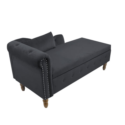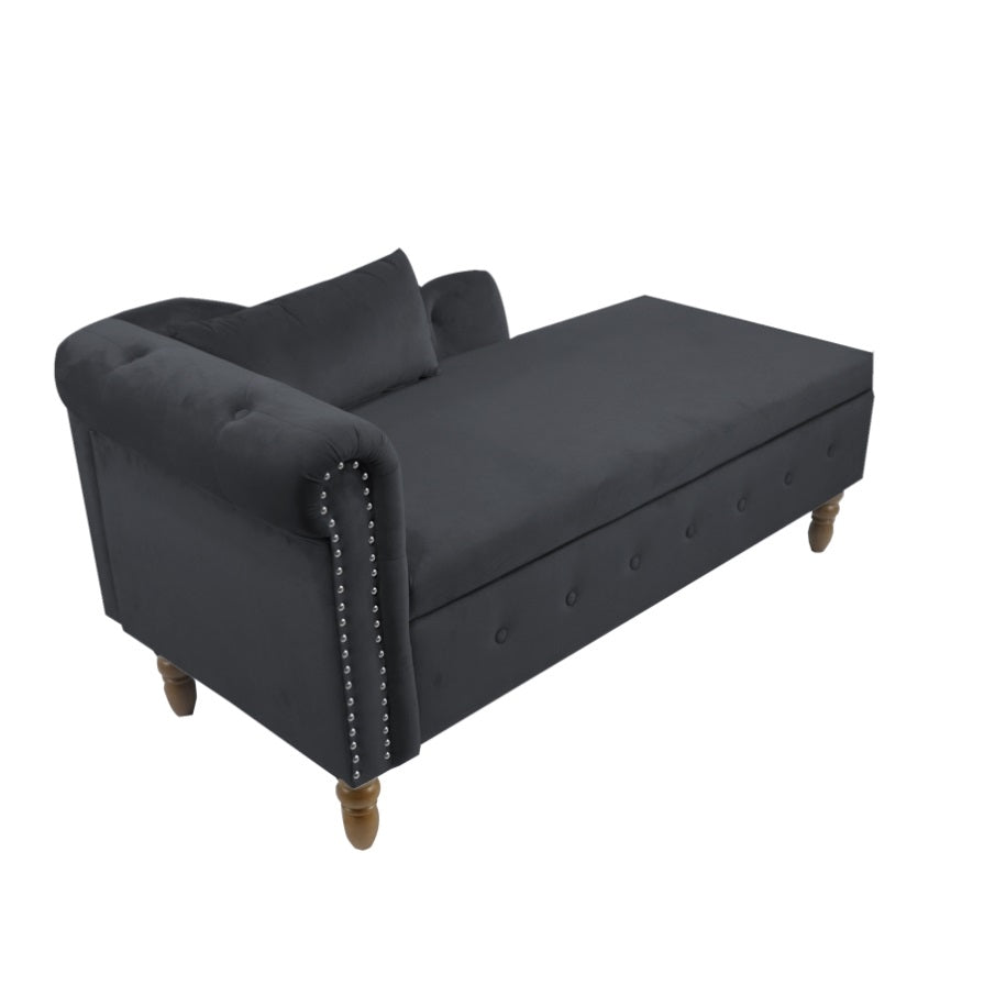 Black Chaise Lounge Indoor,Velvet Lounge Chair for Bedroom with Storage & Pillow,Modern Upholstered W1170100898