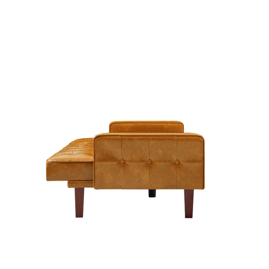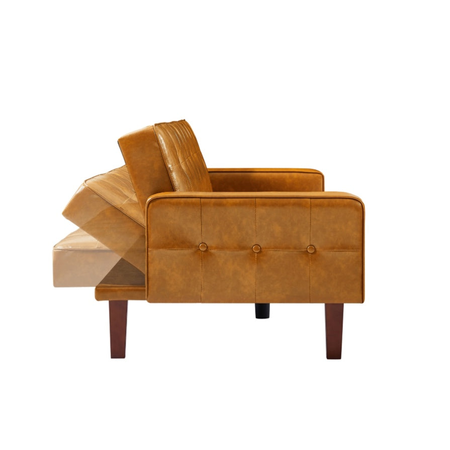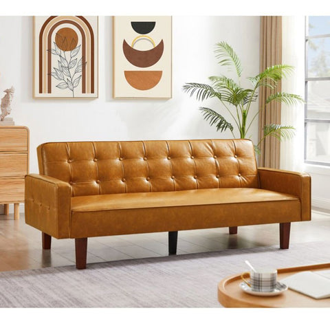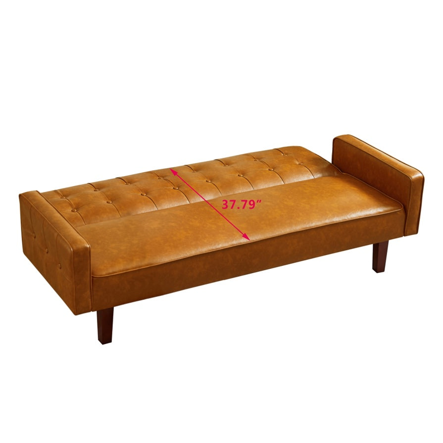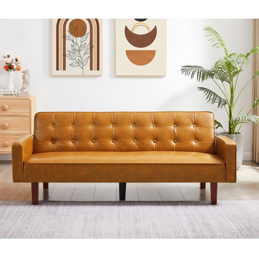 Brown Convertible Double Folding Room Sofa Bed, PU Leather, Tufted Buttons, Suitable for 67482142