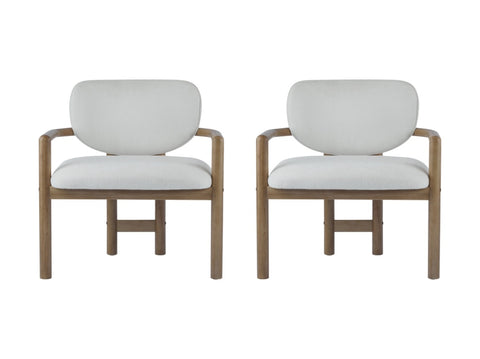 Dining Chairs Set of 2 Upholstered Arm Chairs, Rubber Wood Accent Chairs White Fabric Seating, 300 N779P233060W