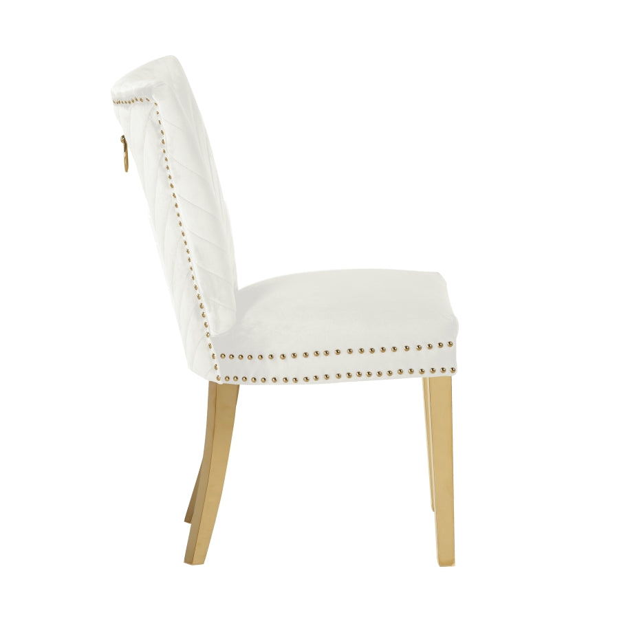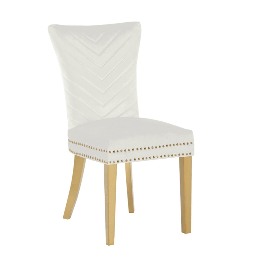 Eva 2 Piece Gold Legs Dining Chairs Finished with Velvet Fabric in Beige B00960895