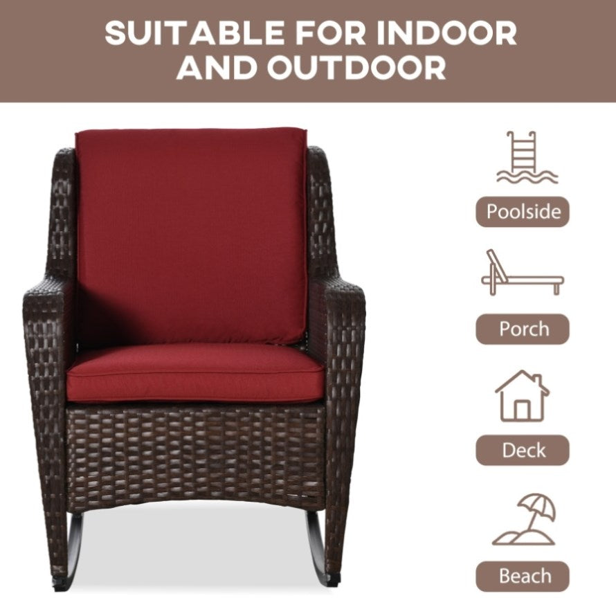 - - Color: Brown Rattan, Wine Red Cushion
