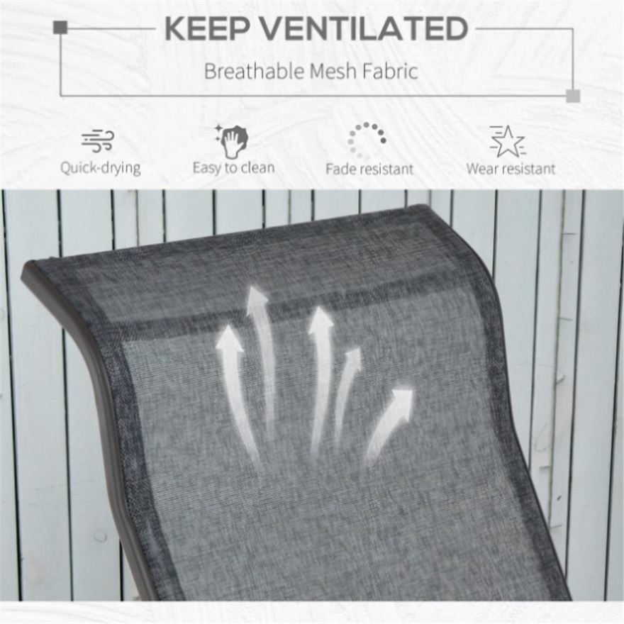 - Weather-resistant mesh fabric and powder-coated steel combine for lasting appeal