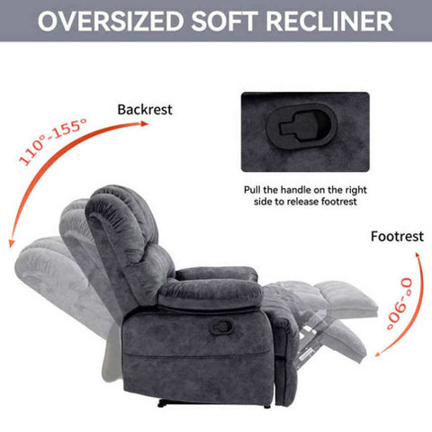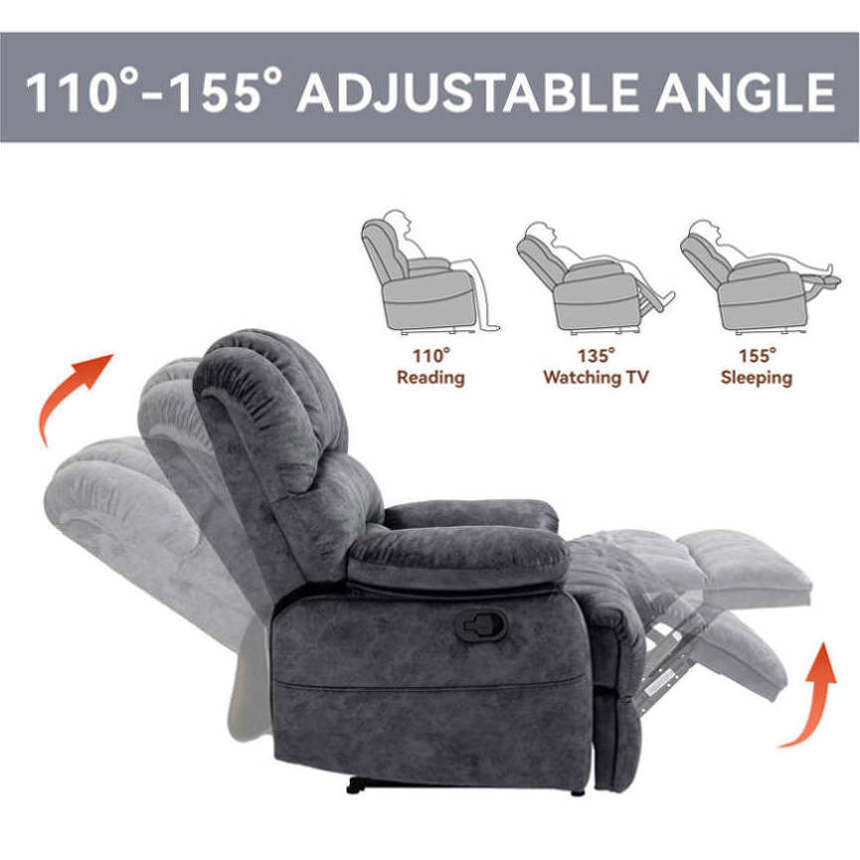OVERSIZED RECLINER CHAIR: You can pull the side button to control the recline of the recliner chair, which means you can get any position you want, it's reclining 155 degrees maximum.
