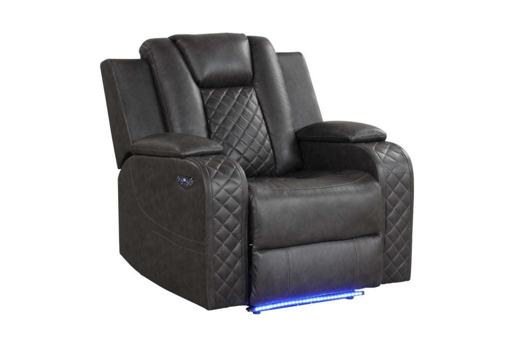 LED & Power Recliner Chair Made With Faux Leather in Black 659436350137