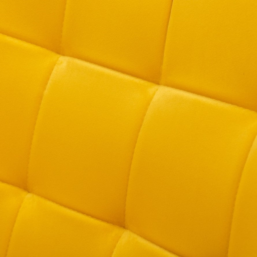 Plush bright yellow polyester upholstered seat, supported by strong and durable solid rubber wood frame