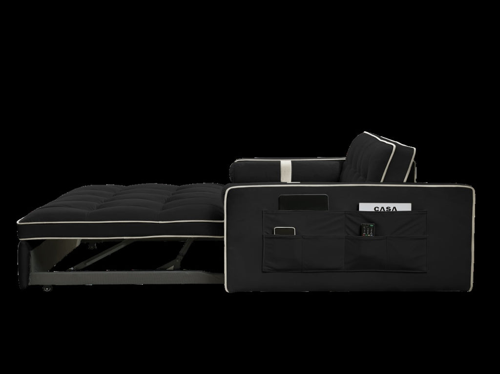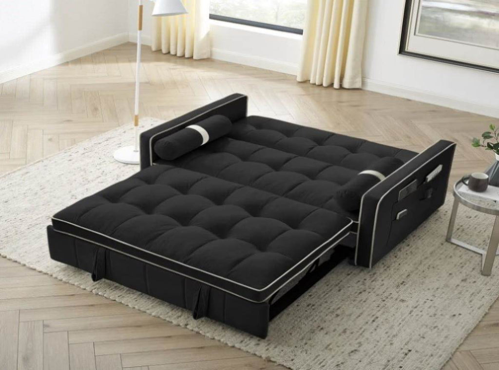 1. Multifunctional pull-out sofa bed. By pulling out and lifting the bed frame under the seat and lowering the backrest, this double position sofa can be quickly converted into a bed for resting use.