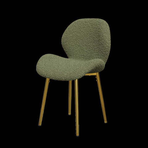 Modern minimalist green teddy velvet Dining Chairs Set of 2 with sturdy gold metal legs and W1727P251143