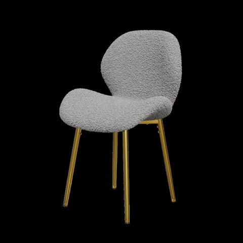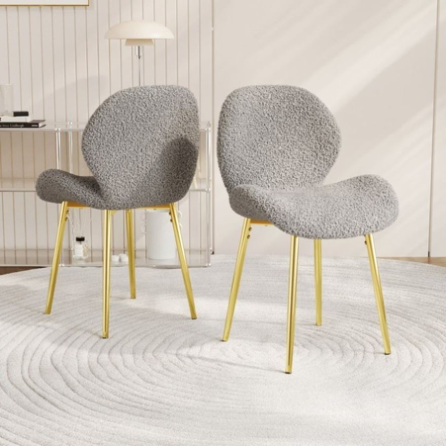 Modern minimalist grey teddy velvet Dining Chairs Set of 2 with sturdy gold metal legs and W1727P251125