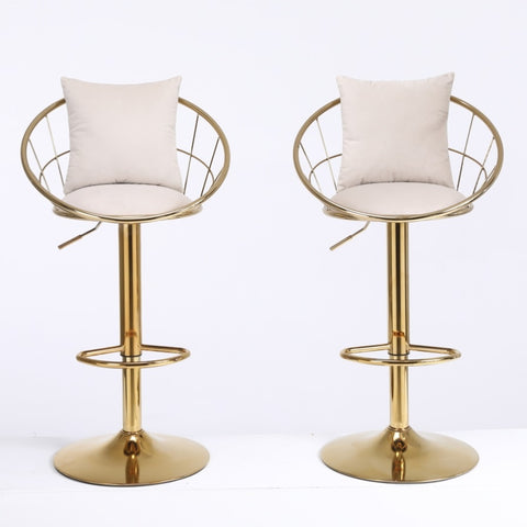 Off-White velvet bar chair, pure gold plated, unique design,360 degree rotation, adjustable W117064133