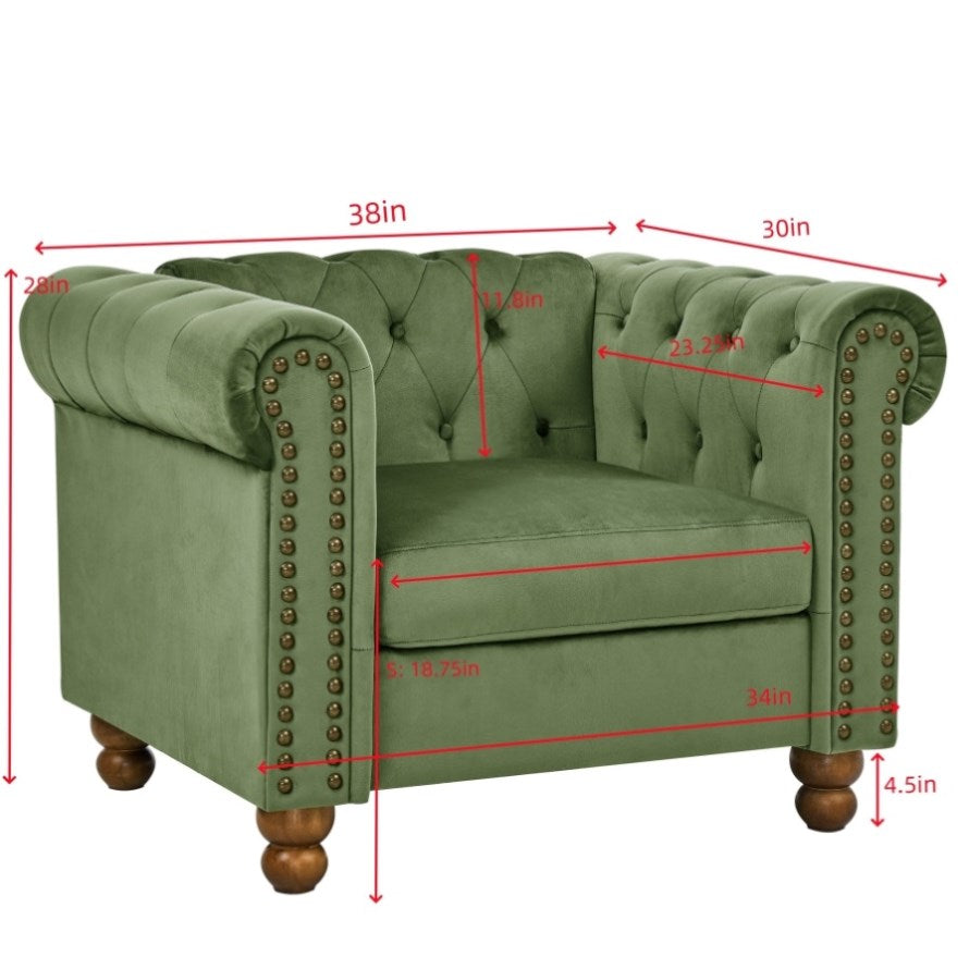 PHOYAL Large CHAIR, Velvet Sofa Classic Tufted Chesterfield Settee Sofa Modern 1 Seater Couch W1708141953