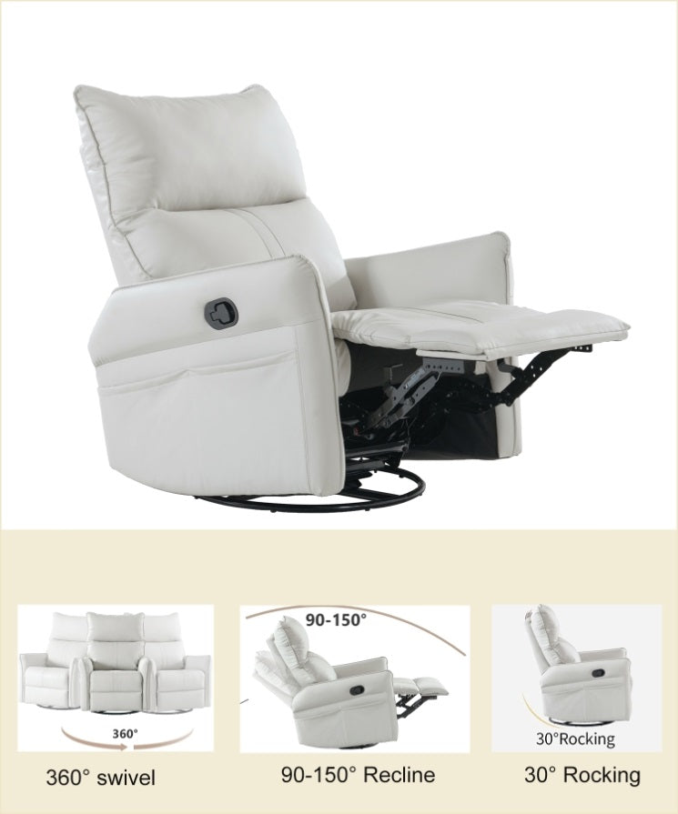 [Swiveling,Rocking & Reclining] It features 360 degree swivel function for your casually sitting or reclining in the chair, you can rock back and forth while having chats with friends or watching films. You can also recline and stretch your body with a pull buckle at side, and the footrest can be extended and retracted, for your ultimate lounging experience.