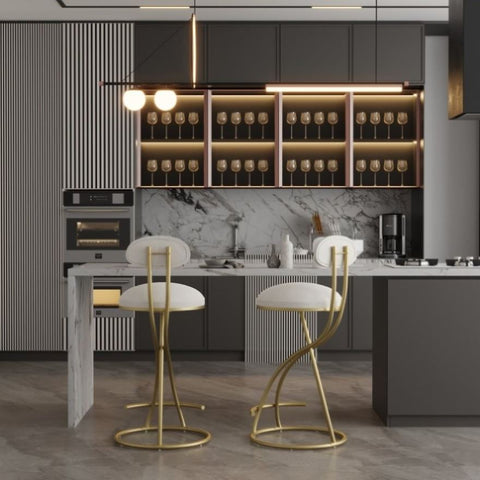 The nicely stitched velvet and minimalist design make these barstools both stylish and functional. With a max loading capacity up to 220 pounds, these stools will last for years.