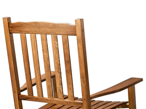 This beautifully designed Rocking Chair complements any outdoor setting, perfect for a backyard or front porch area. This rocking chair's solid wood frame and legs create a stable structure. Relax and enjoy a soothing cup of morning coffee on our rocking chair. The simple and classic design provides a comfortable rocking motion setting. Enjoy the fresh breeze of a sunny spring day or a summer night while sitting and having a conversation with friends. So don't hesitate, it's a good choice for you!