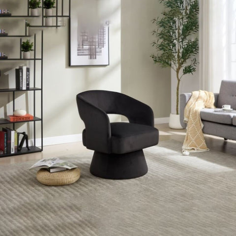 Modern: Compact styling takes a modern turn in this sleek and stylish swivel accent chair, a sophisticated addition to modern living rooms and dens. Upholstered in a velvet fabric, this chair offers a curvy silhouette and 360-degree swivel motion