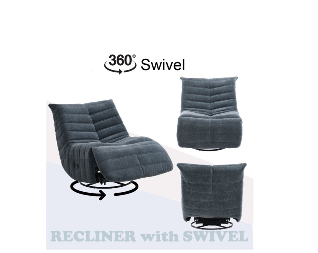 This recliner with swivel functionality, upholstered in Shadow Chenille, offers both comfort and versatility.
