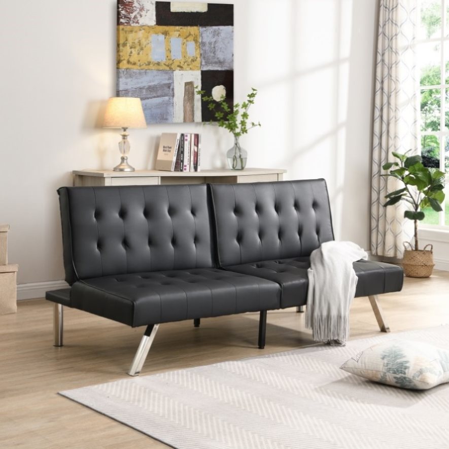 WOOD FRAME, STAINLESS LEG, FUTON, SOFA BED BLACK PVC W2297P247530