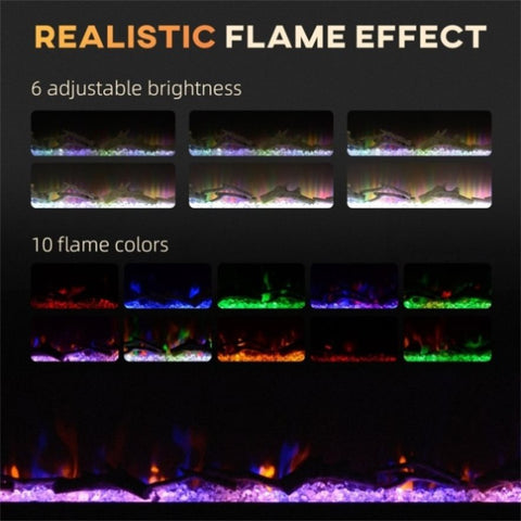 - - Faux-fire logs and crystals mimic traditional fireplace aesthetics
