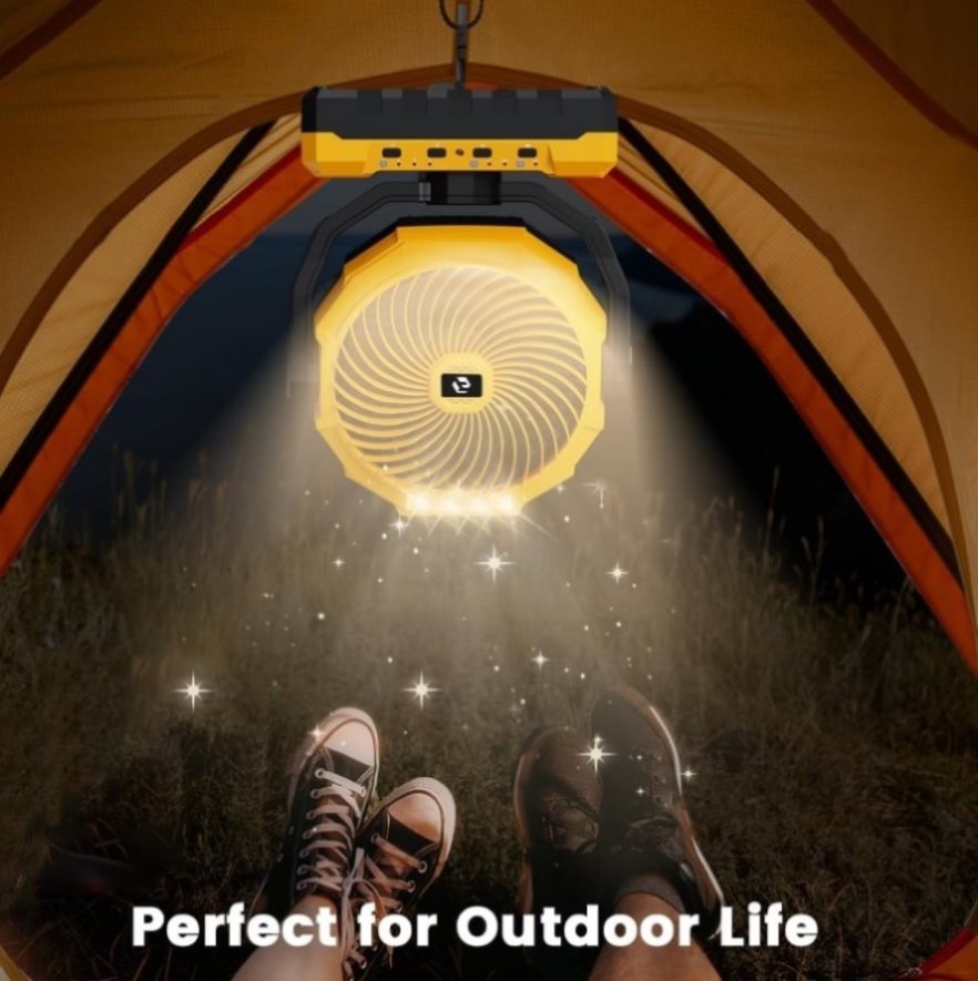 [WIRELESS FAN ] Born for Camping: Controllable by remote control and buttons and powered by a rechargeable 24000mAh battery (built-in) that lasts 8-30 hours and lights up for 100 hours.