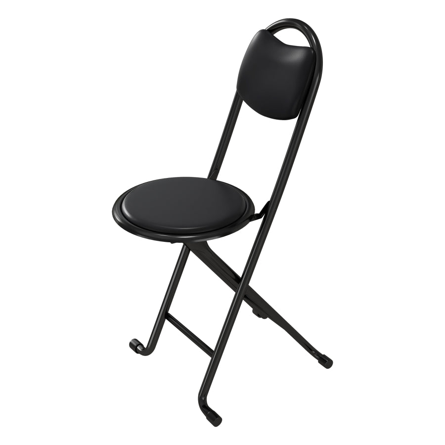 Durable Construction-This collapsible stool is constructed from tough steel tubing with thick padded cushion to provide comfortable seating and covered with PU leather which is easy to clean. The legs are X-shaped for stability.