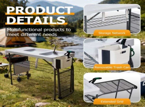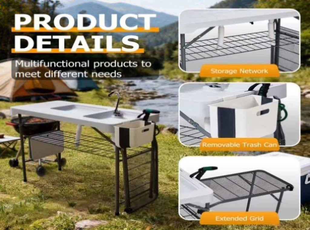 3. Spacious Work Surface: The large tabletop provides ample room for fish cleaning, meal preparation, and organizing tools or ingredients during outdoor activities.