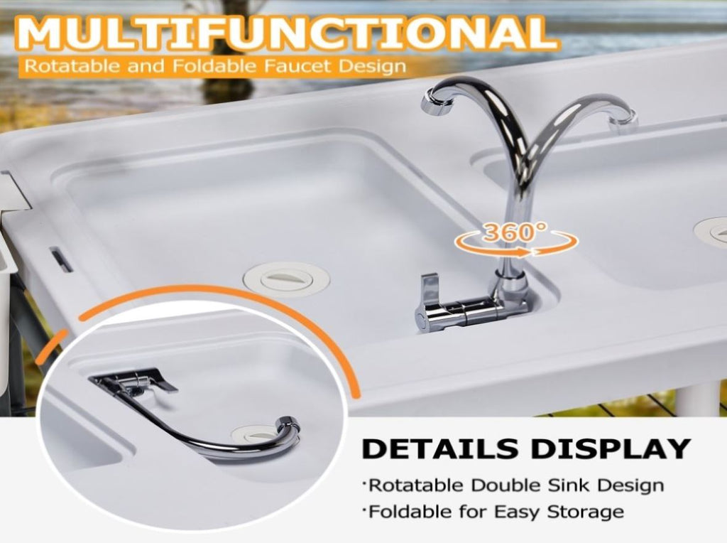 2. Dual Sink Multipurpose Design: Features 2 built-in sinks with plugs that can be used together or covered to create a flat tabletop for food prep, cleaning, or general use.