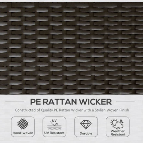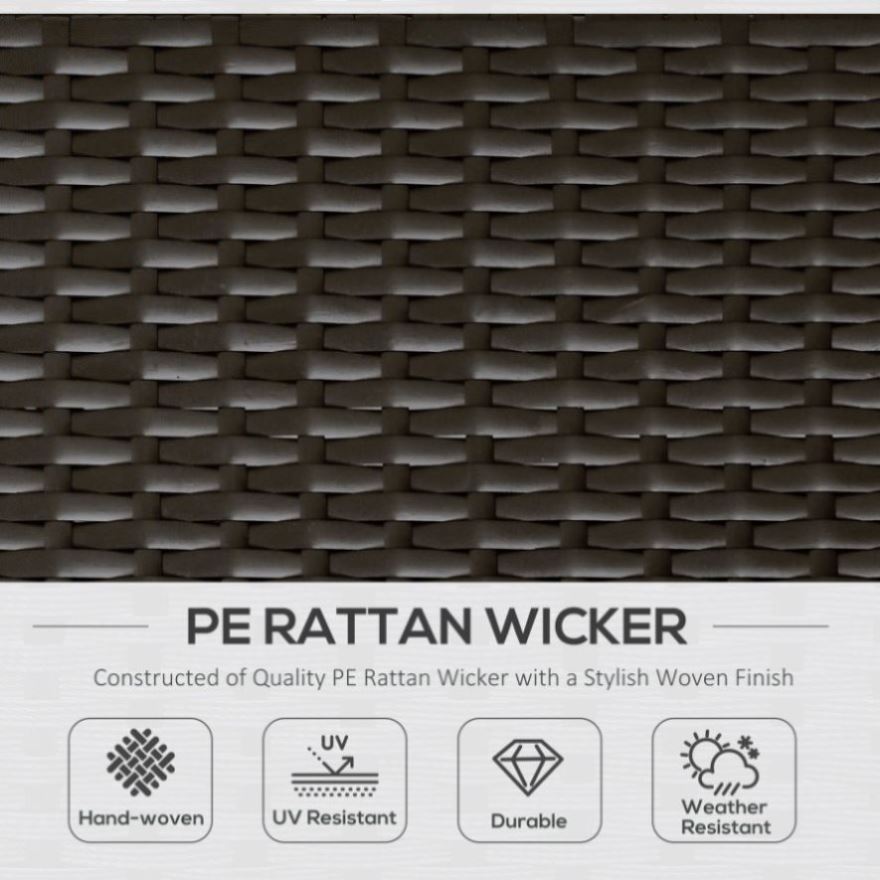 • - Materials: Steel, Tempered Glass, PE Rattan Base, Polyester Fabric